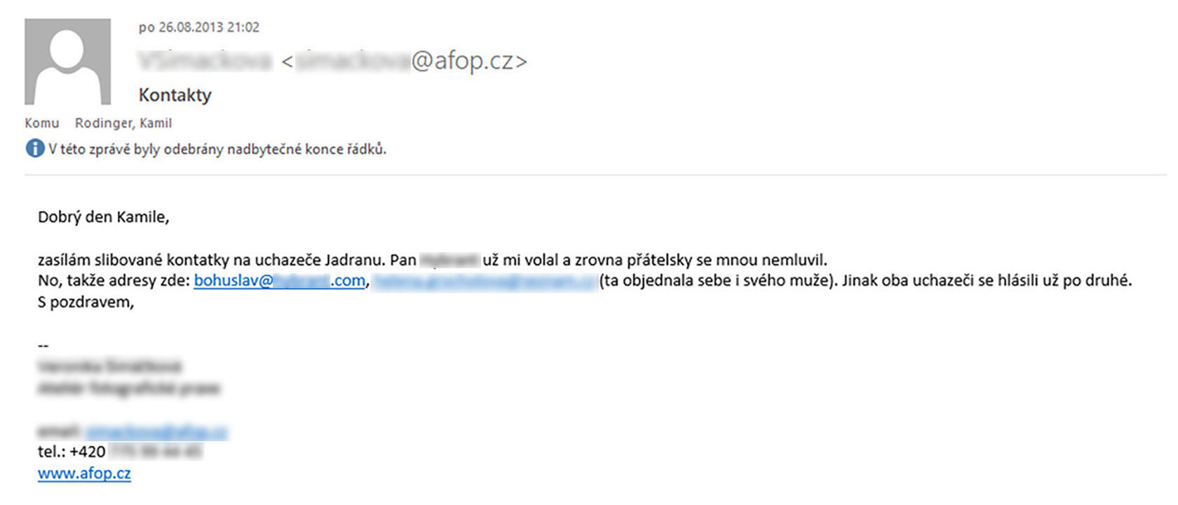 Odpoledne mi dorazila emailem odpověď a vysvětlení: „Ahoj Kamile, celý den musím myslet na to, co jsi mi ráno říkal. Slovní spojení od A do Z je tak často použité, že mě vůbec nenapadlo, že tak máš pojmenovaný svůj kurz. Neudělal jsem to úmyslně…, vyjádřil si se, že jsem vlastně tvoje konkurence tím, že jsem začal dělat vlastní workshopy. To mě na jednu stranu těší, že mě bereš jako konkurenci s tím co umím a s tím co umíš ty, ale na druhou stranu je to zásadní problém, co se týká další participace na workshopu apod. V pořádání akcí mám dlouholetou zkušenost, v rámci svazu zajišťuju výuku u akreditovaných kurzů a semináře se zahraničními lektory a nebo je vedu sám. Baví mě práce s lidmi a to je i jeden z důvodů, proč začínám dělat workshopy.“ A přišla i „velkorysá“ nabídka: „V případě, že budeš chtít s workshopem či dopravou apod. pomoci, rád ti pomohu, jak bude v mých silách a jako vždy zdarma, ale pouze v případě že budeš ochoten akceptovat tu skutečnost, že i já. A nemám v plánu ti vykrádat nápady či přetahovat lidi.“
